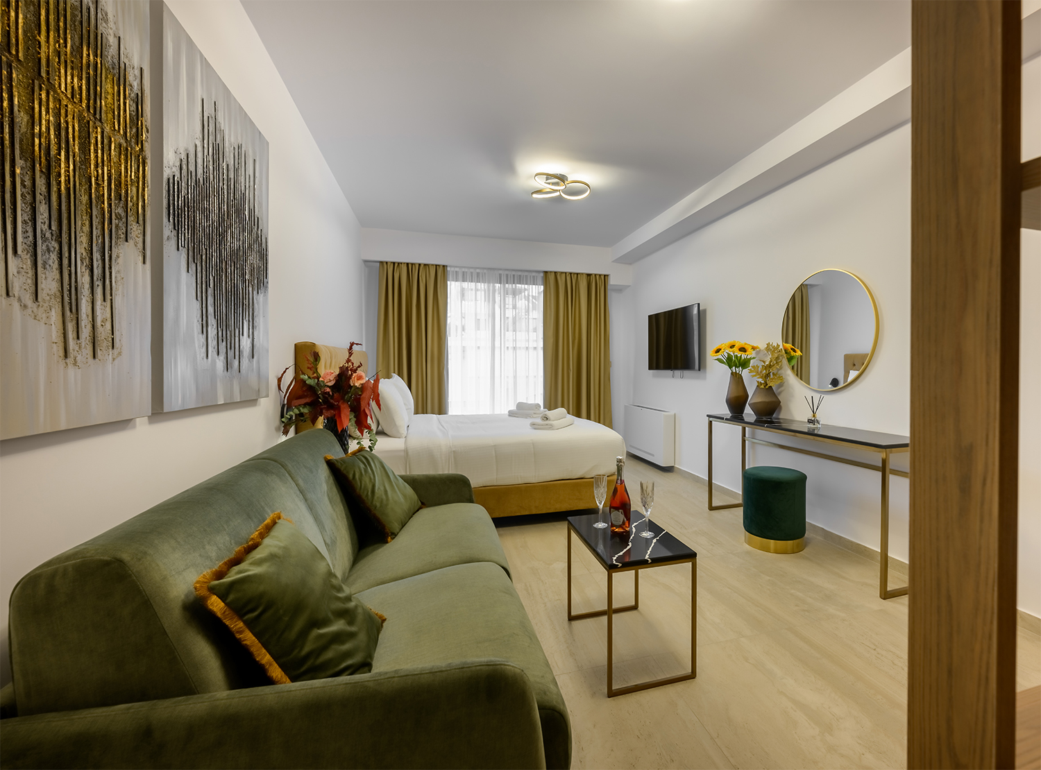 Newly built, luxurious apartments and suites - maisonettes, fully equipped, combining elegance and ergonomics. The apartments and suites - maisonettes feature luxurious decoration, a private balcony, and inspire with their creativity and imagination, offering guests a sense of affordable luxury.